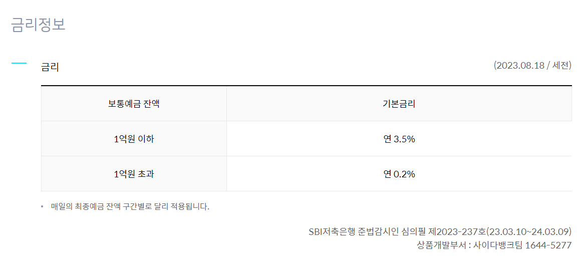 2-1) SBI 저축은행 파킹통장 금리 비교