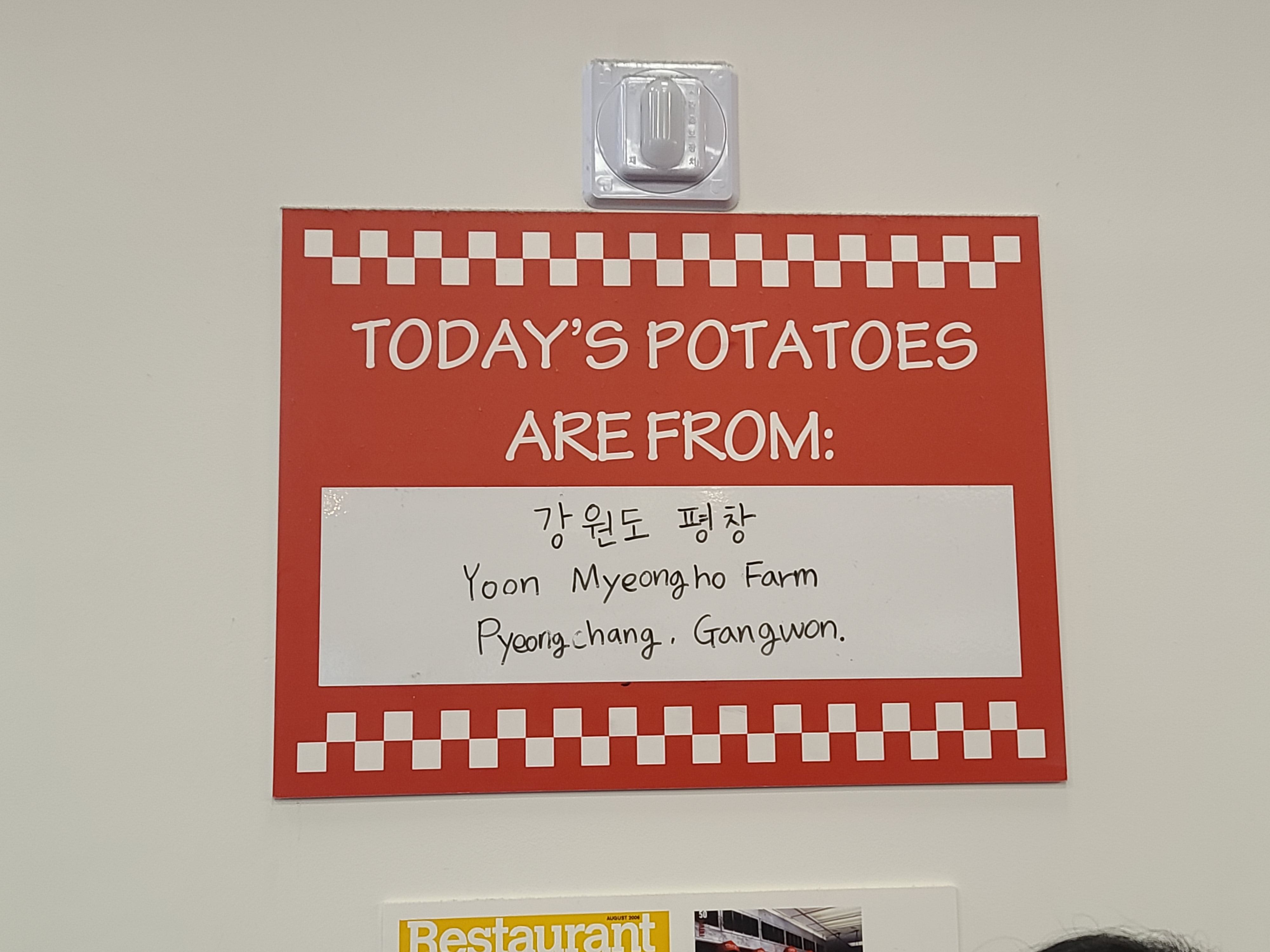 그리고 또 한가지 재미있었던 것이, 이 감자가 어느 농장에서 왔는지 벽면에 대문짝만하게 적혀있었다는 것입니다.