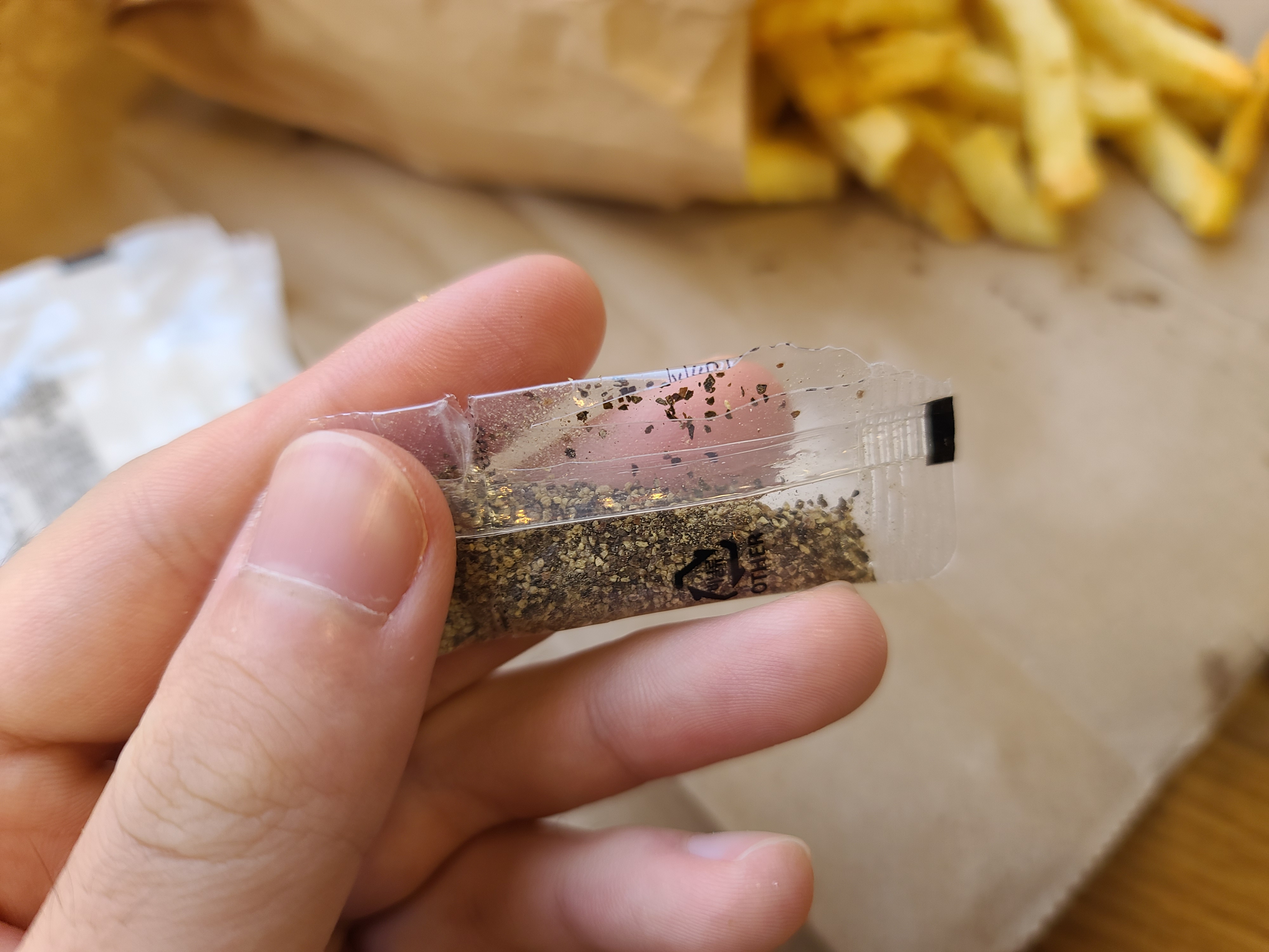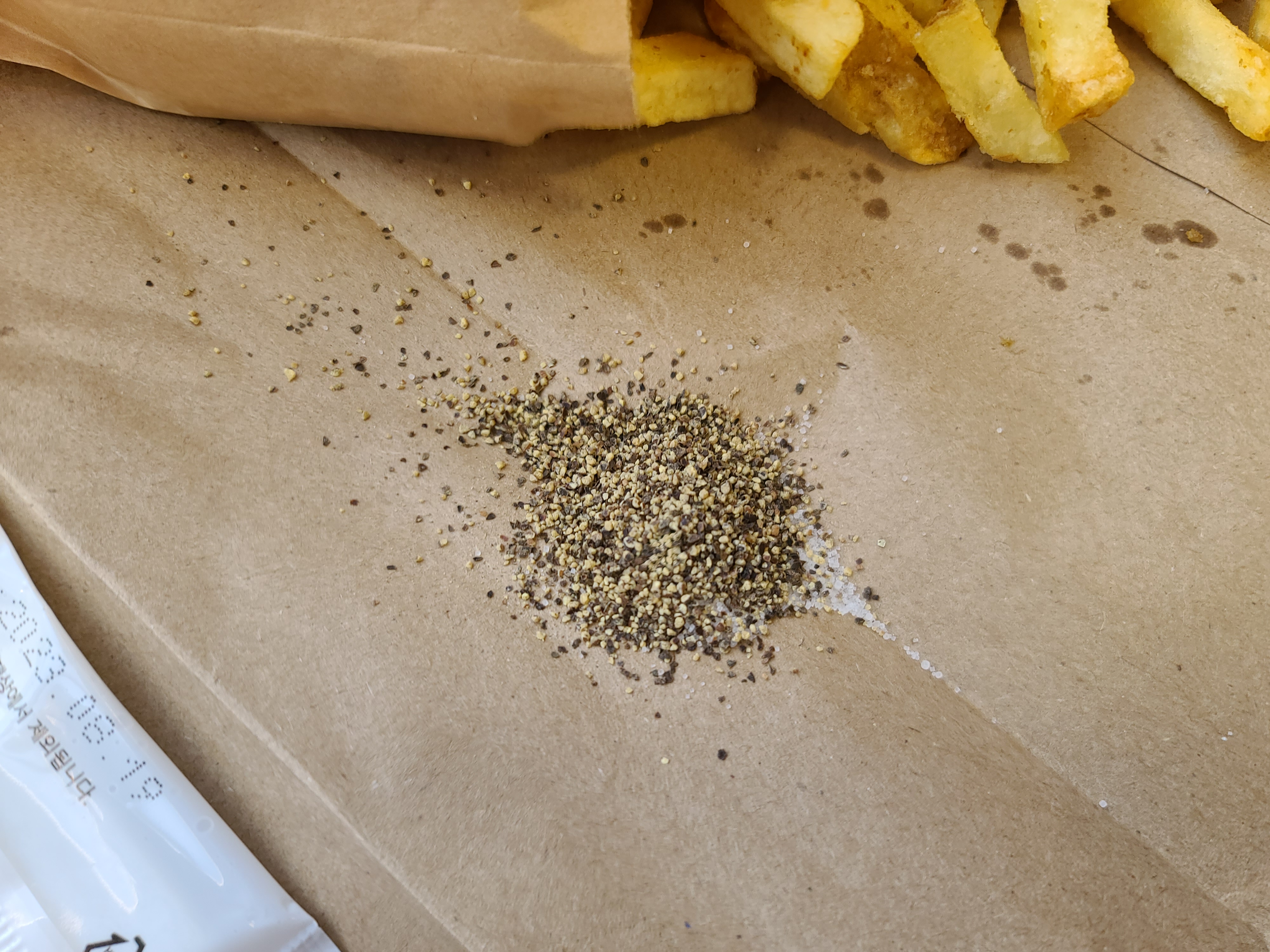 원래 프랜차이즈 햄버거집에서 감자튀김을 시키면 그냥 '아, 그냥 감자튀김 맛이구나' 하면서 별 생각 없이 무의식적으로 집어먹게 되는게 정상입니다.
