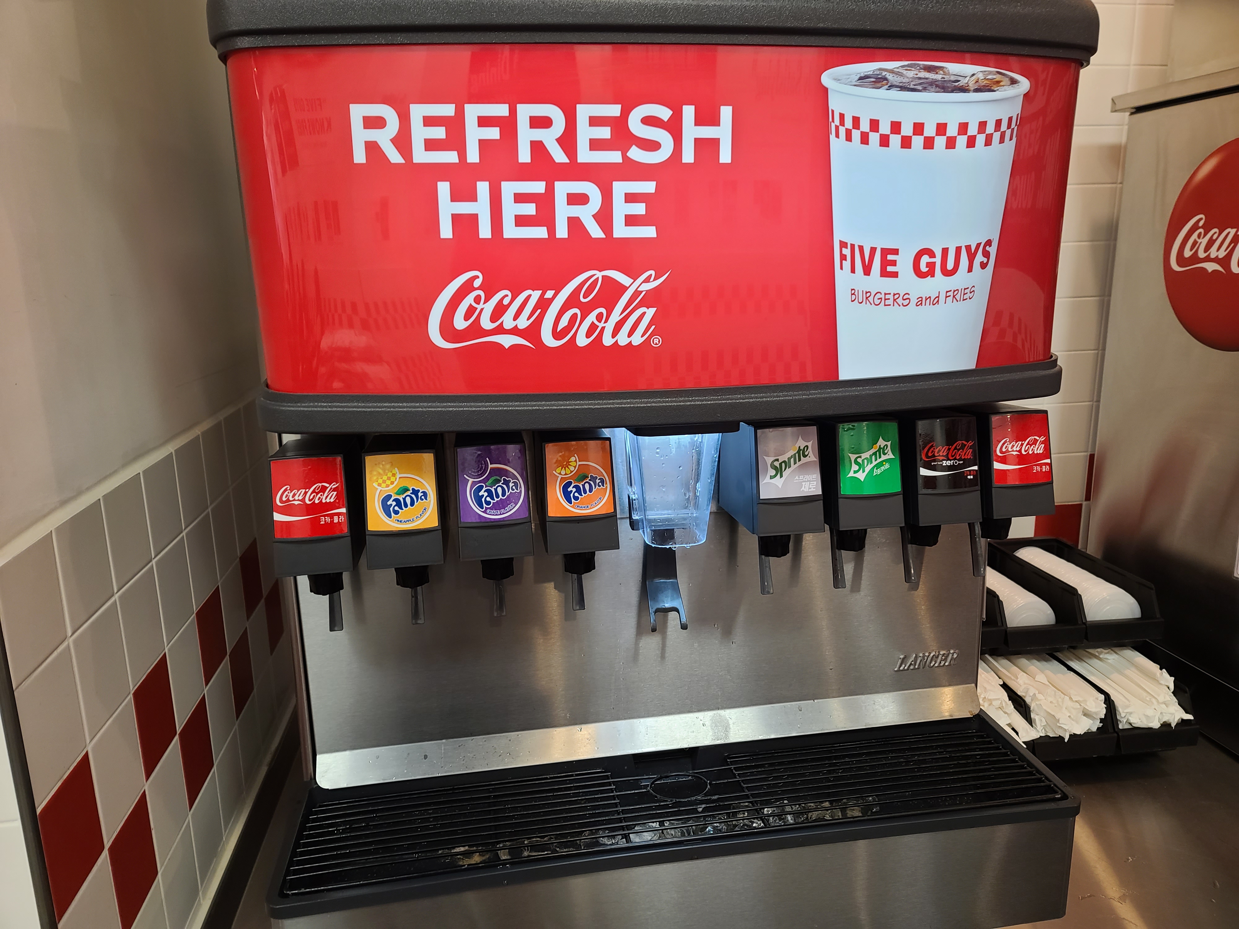 탄산음료를 주문하시면 컵을 받아서 개인적으로 음료수를 뽑아먹는 시스템인데, 이 음료수 기계가 1층에도 있고 2층에도 있습니다.