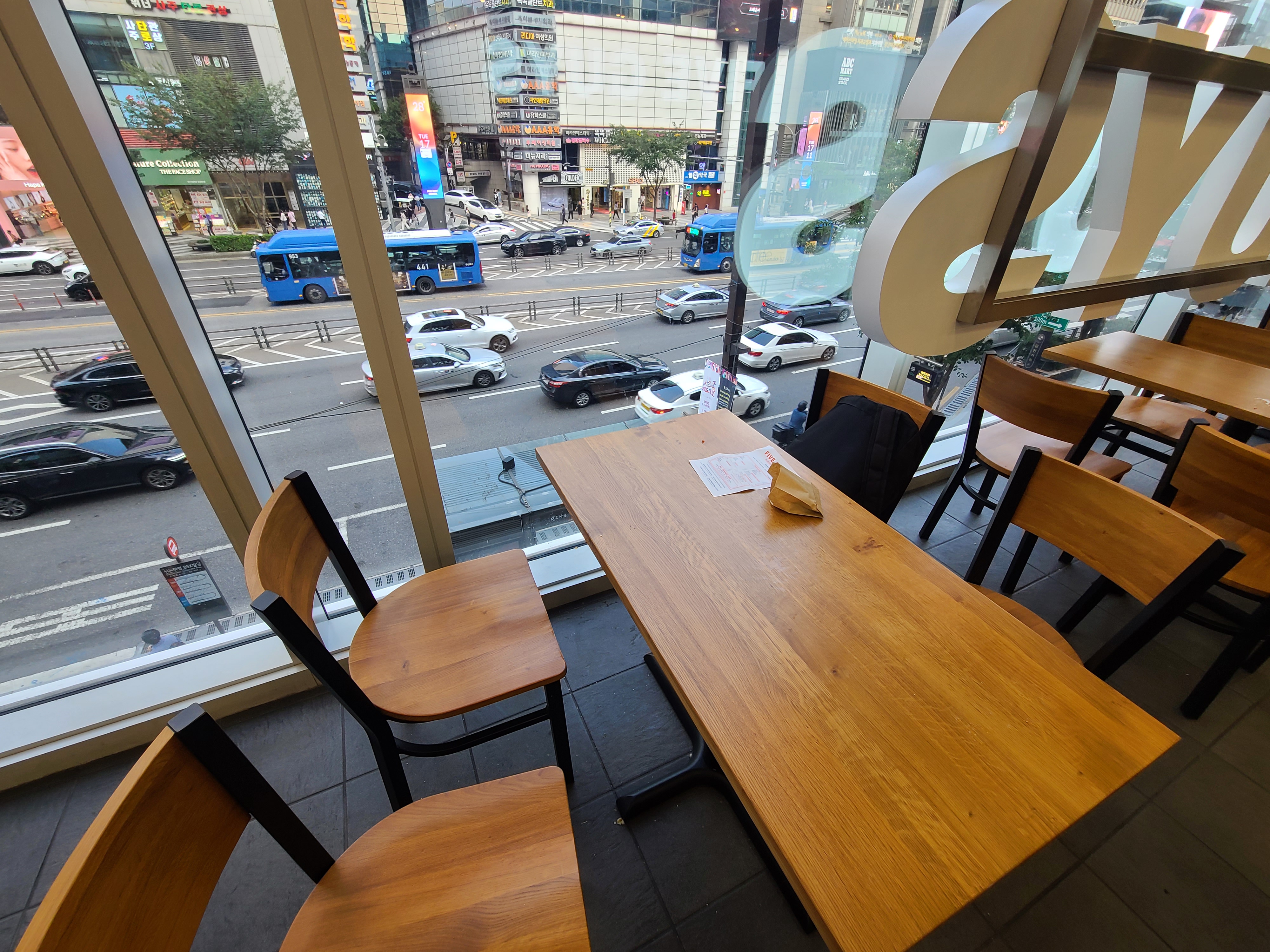 저는 이런식으로 일행과 역할을 분담하여 강남대로가 한 눈에 들어오는 창가자리에서 식사를 할 수 있었습니다.