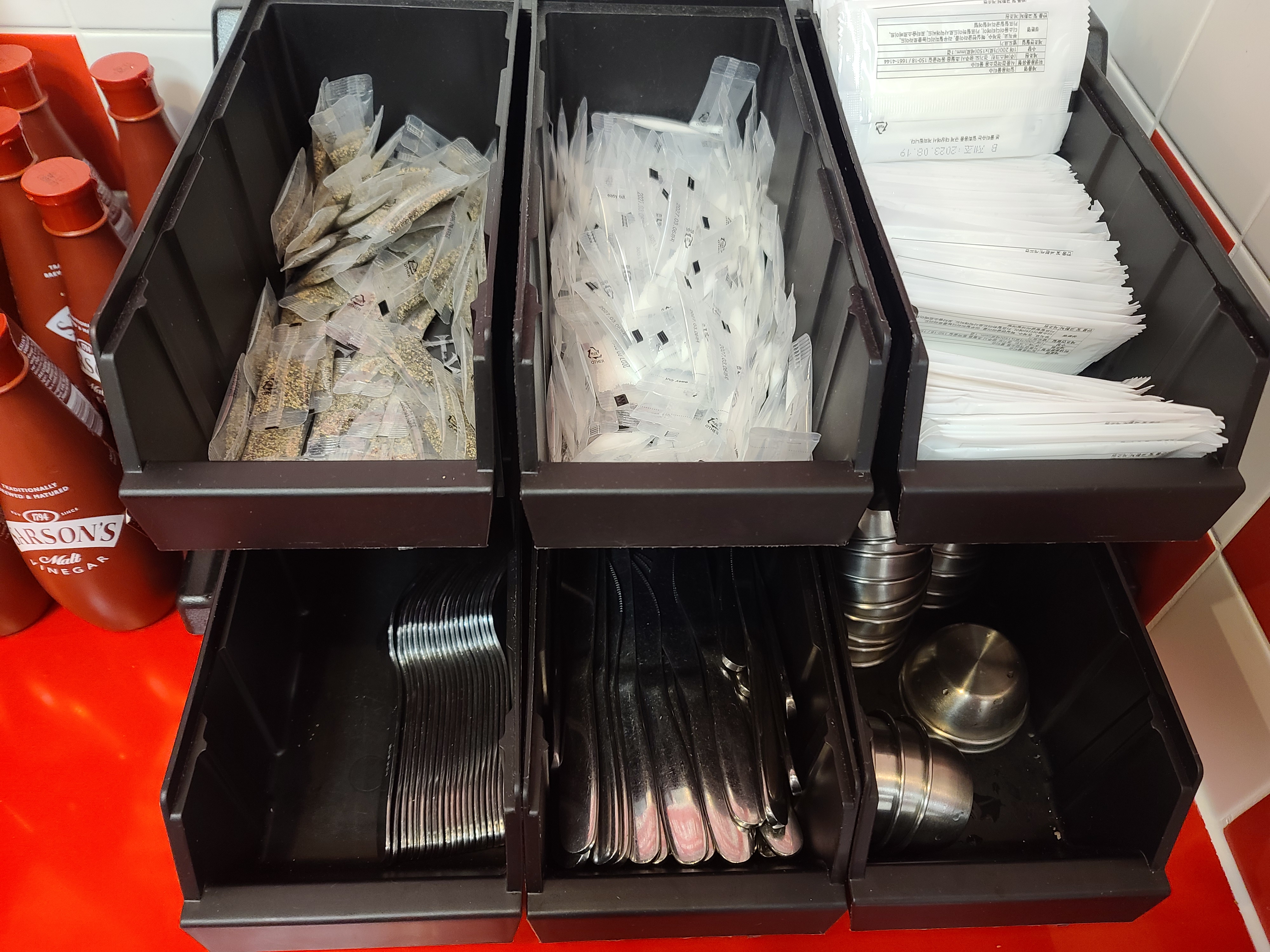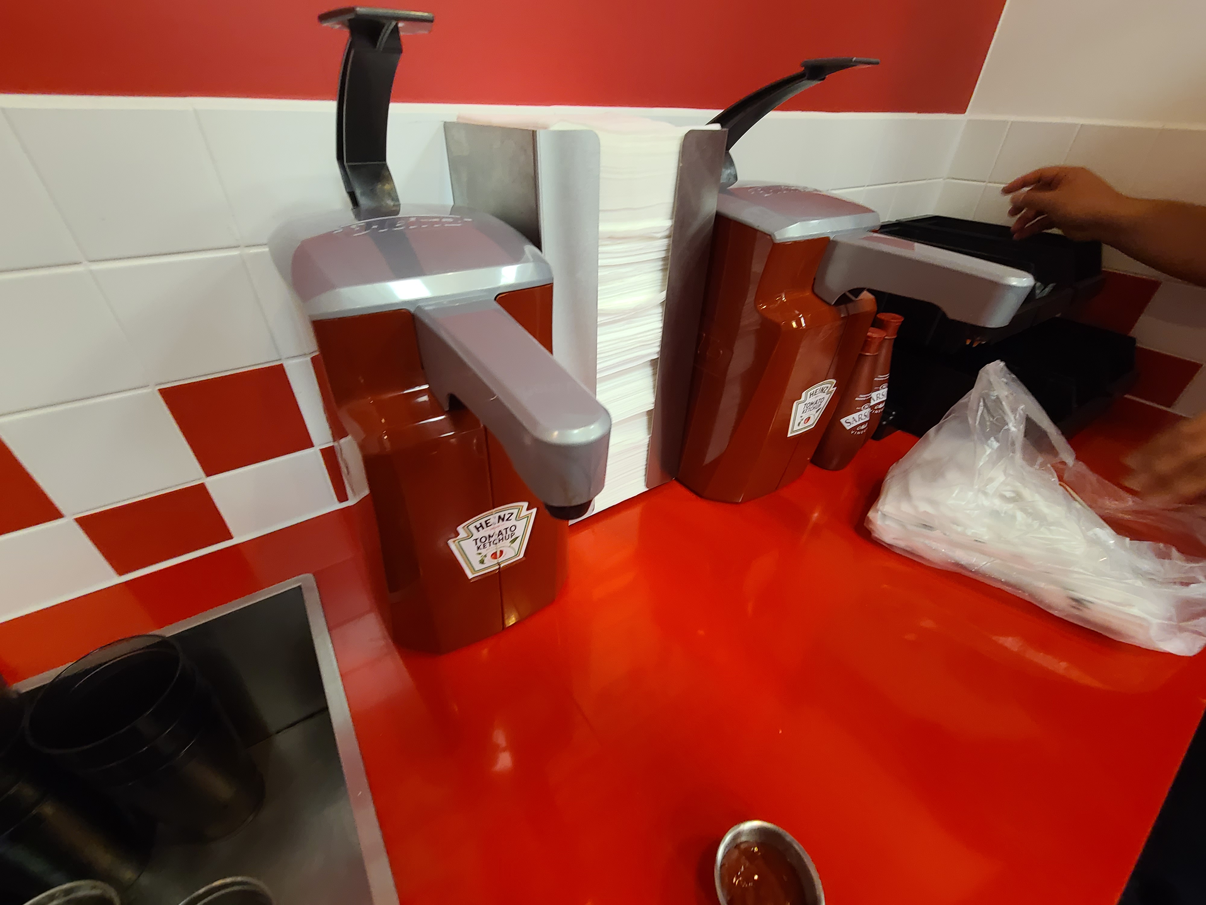 1층과 2층에는 이렇게 토마토 캐첩을 셀프로 받아갈 수 있는 공간이 마련되어 있습니다.