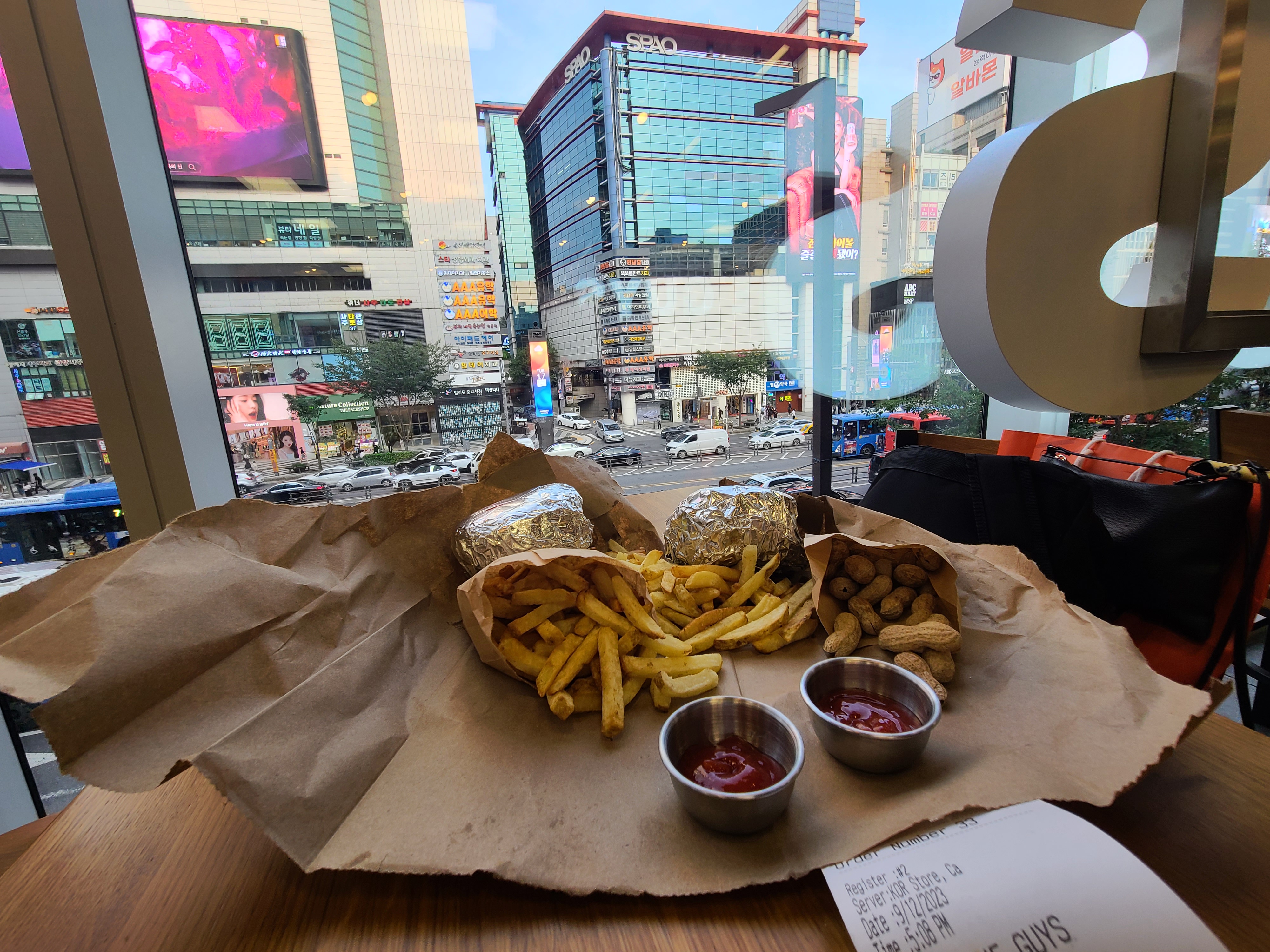 어쨌든 강남 파이브가이즈 자리 맡는 꿀팁은 여기까지 말씀드리고, 마지막 목차로 넘어가서 파이브가이즈 강남의 햄버거와 감자튀김 솔직 맛평가를 해보도록 하겠습니다.