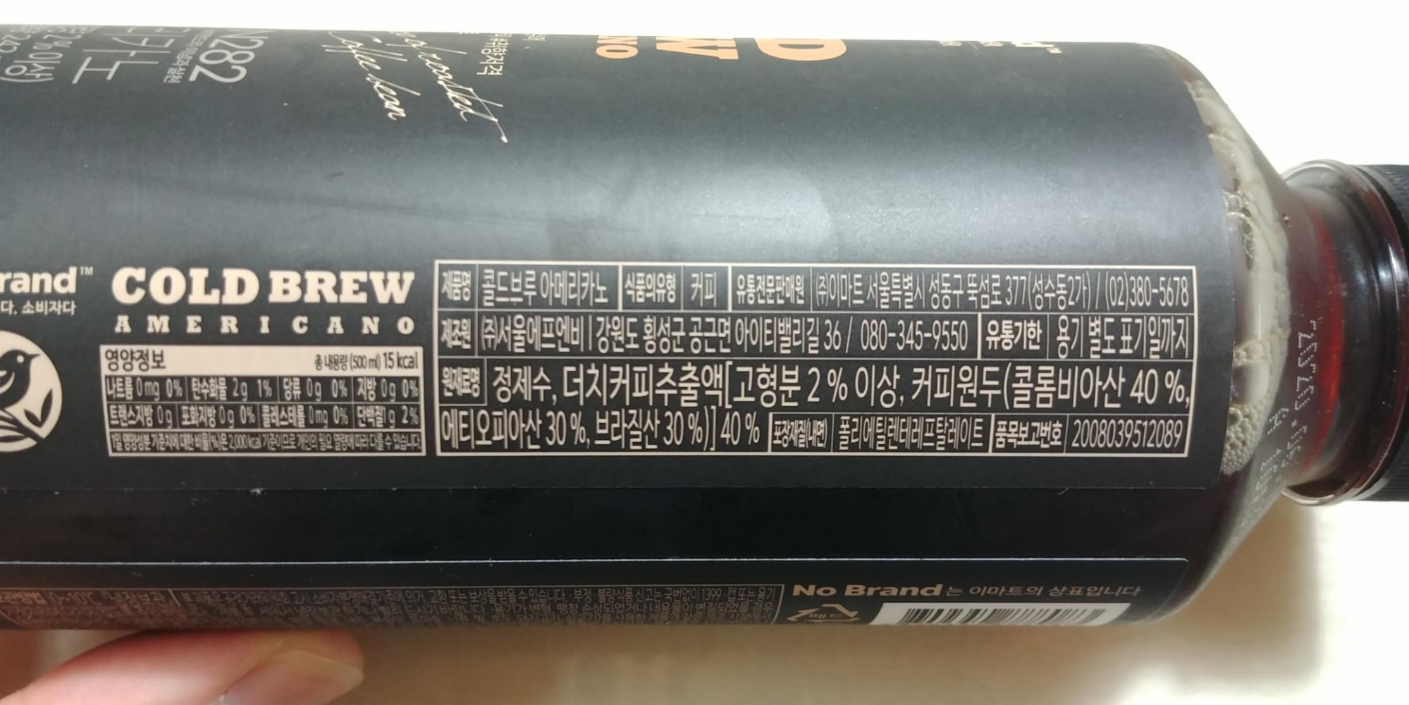 그리고 한 가지 더 구별되는 점은 노브랜드 콜드브루의 산미가 은근히 많이 느껴진다는 것입니다. 확실히 일반 아메리카노보다는 노브랜드 콜드브루의 산미가 강한 것 같습니다. 저는 커피의 산미가 풍기는 시큼한 맛을 싫어하는 편이라서 저에게는 마이너스 요소로 작용했습니다. 하지만 그만큼 쓴 맛이 약하기 때문에 먹어줄 만했습니다. 뭔가 누룽지 탄 부분에서 느껴지는 씁쓸하고 구수한 맛이 느껴지는 것 같기도 합니다.