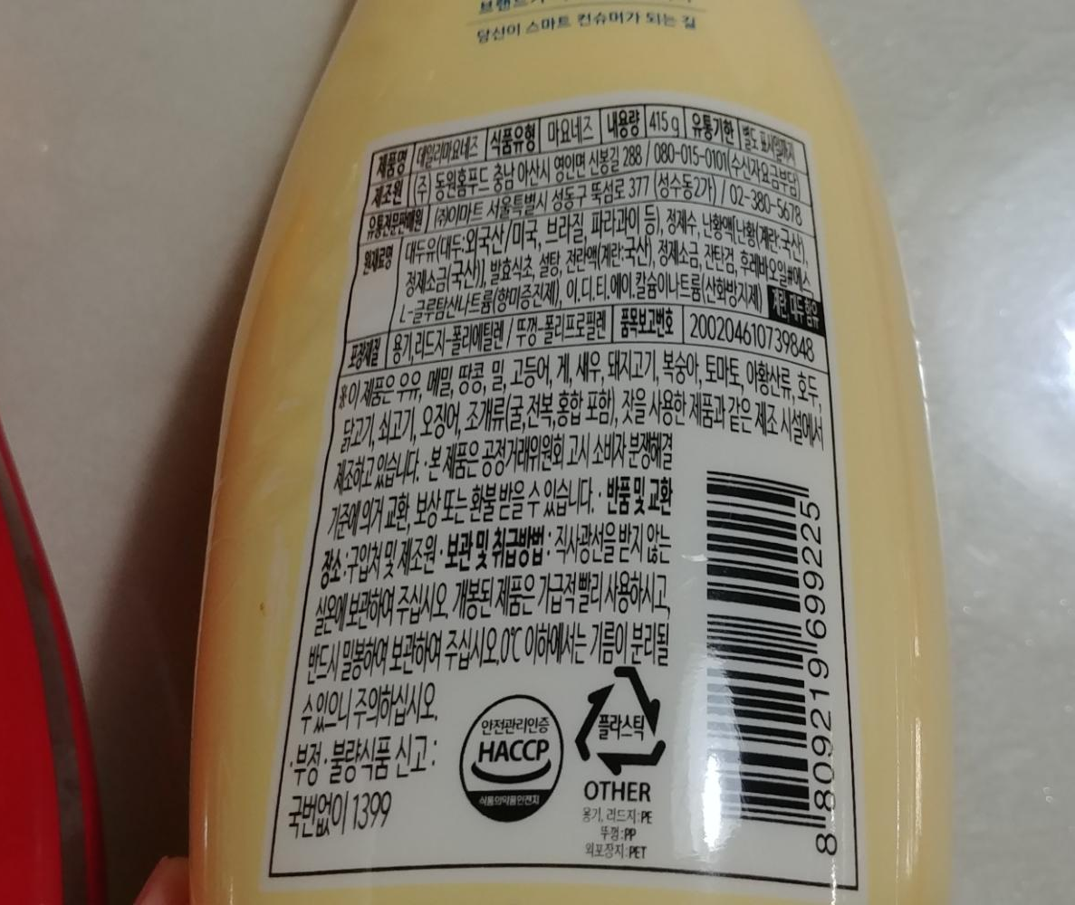 마요네즈는 415g이고 케찹은 500g인데 마요네즈가 2,380원이고 케찹이 1,680원입니다. 중량은 케찹이 더 높지만 가격은 마요네즈가 더 높습니다. 토마토보다는 계란 노른자와 기름이 더 비싼가 봅니다. 저는 마요네즈를 더 좋아하는데 아쉽습니다.