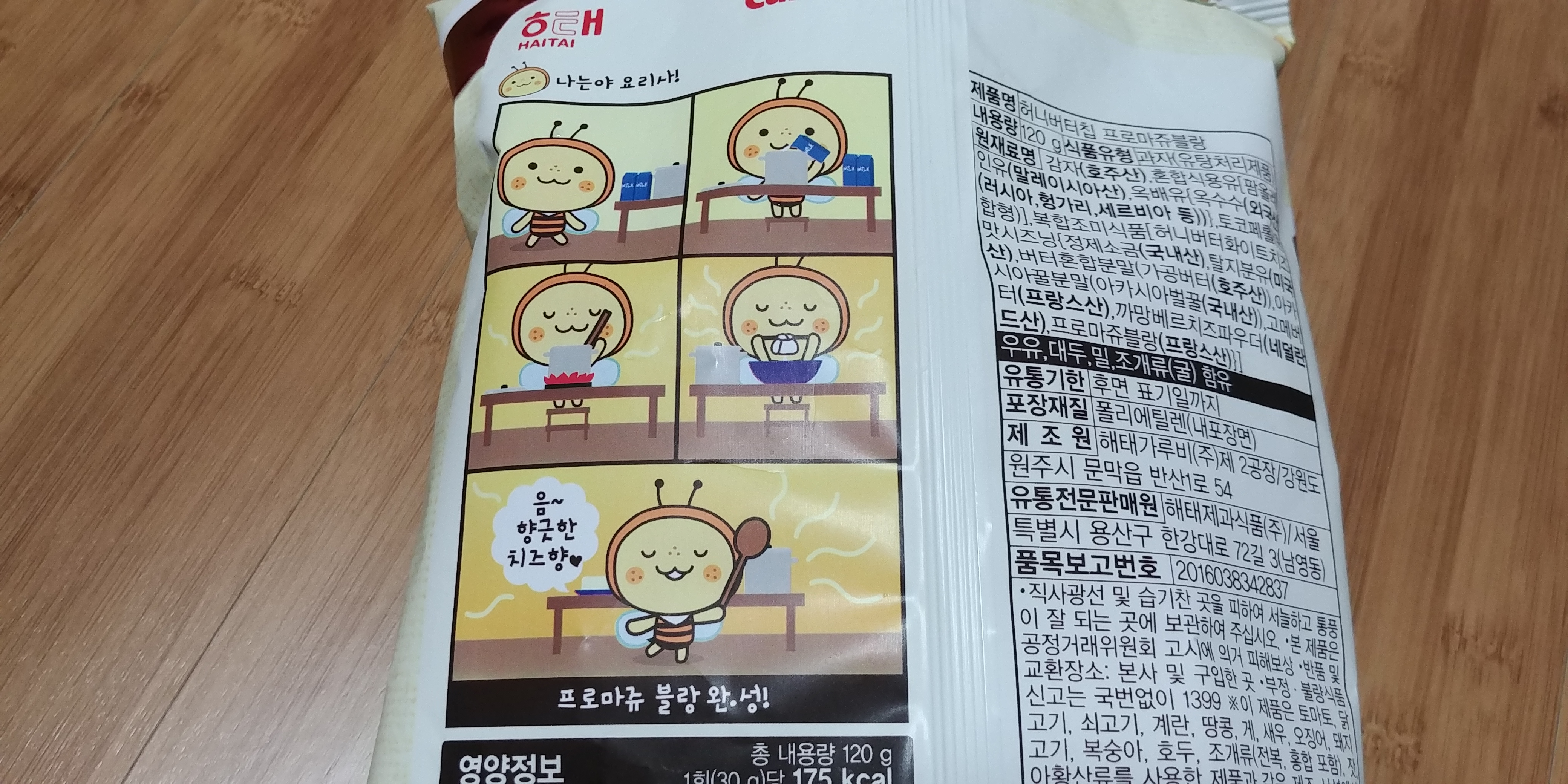 물론 오리지널 허니버터칩과 비교해 보면 가격은 똑같고 치즈가 추가된 것이기 때문에 허니버터칩 프로마쥬블랑을 사먹는 것이 더 이득이라고 생각합니다. 물론 치즈를 별로 좋아하지 않으시는 분이라면 해당되지 않는 부분입니다.