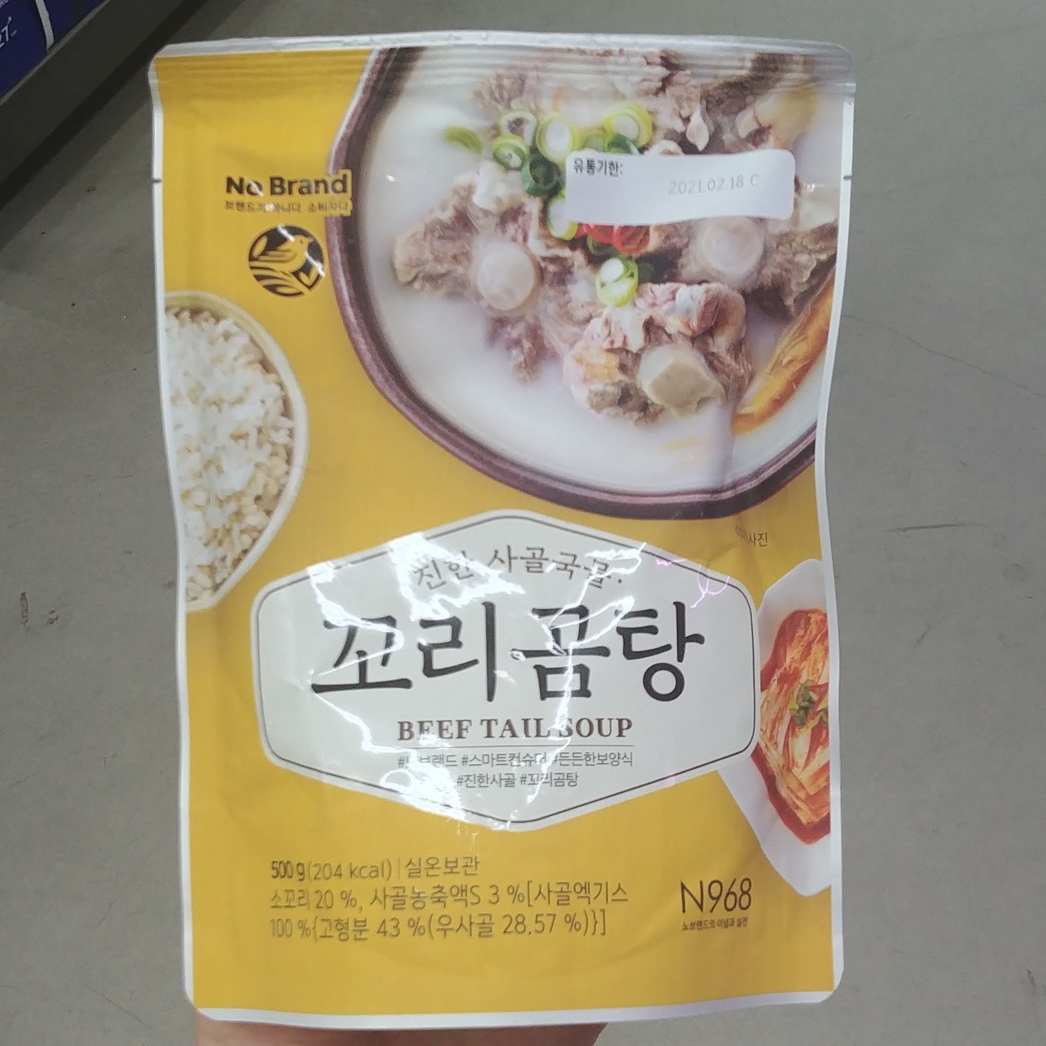 오늘 리뷰할 노브랜드 제품은 "노브랜드 꼬리곰탕"입니다. 옛날에는 집에서 곰국을 한 솥 끓여서 온가족이 일주일간 먹었던적이 종종 있었습니다. 하지만 요즘에는 끓이는게 워낙 귀찮고 오래걸려서 잘 먹게되지 않는데, 노브랜드에 즉석식품으로 곰탕을 팔길래 한 번 구매해봤습니다. 정확히는 꼬리곰탕입니다.