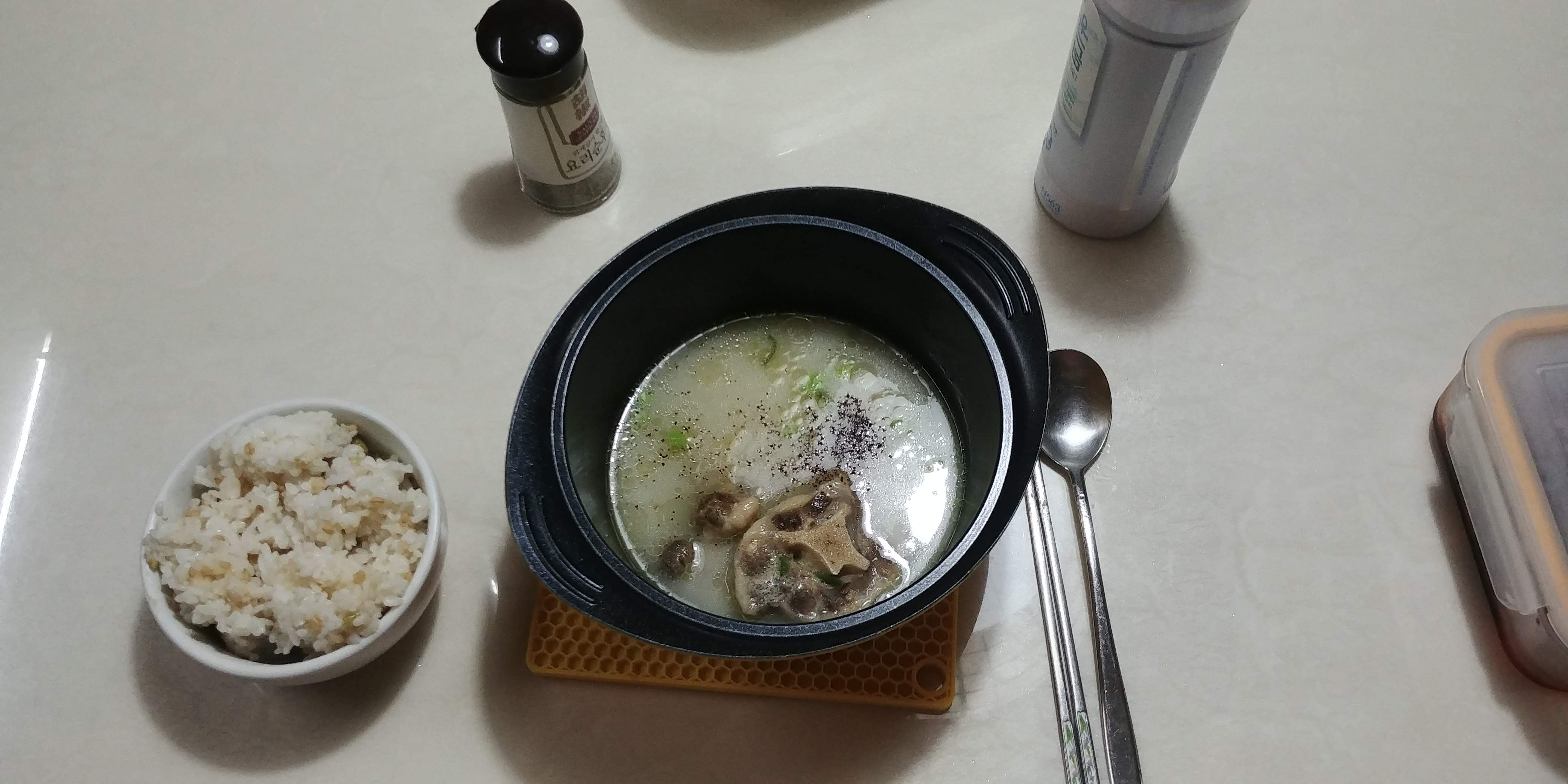꼬리곰탕만 먹으면 먹는 의미가 없기 때문에 밥까지 세팅을 해봤습니다. 위에서 말씀드렸던 것과 같이 살짝 싱거웠기 때문에 소금과 후추를 첨가해서 먹었습니다. 자세한 맛평가는 밑의 총평에서 해보도록 하겠습니다.