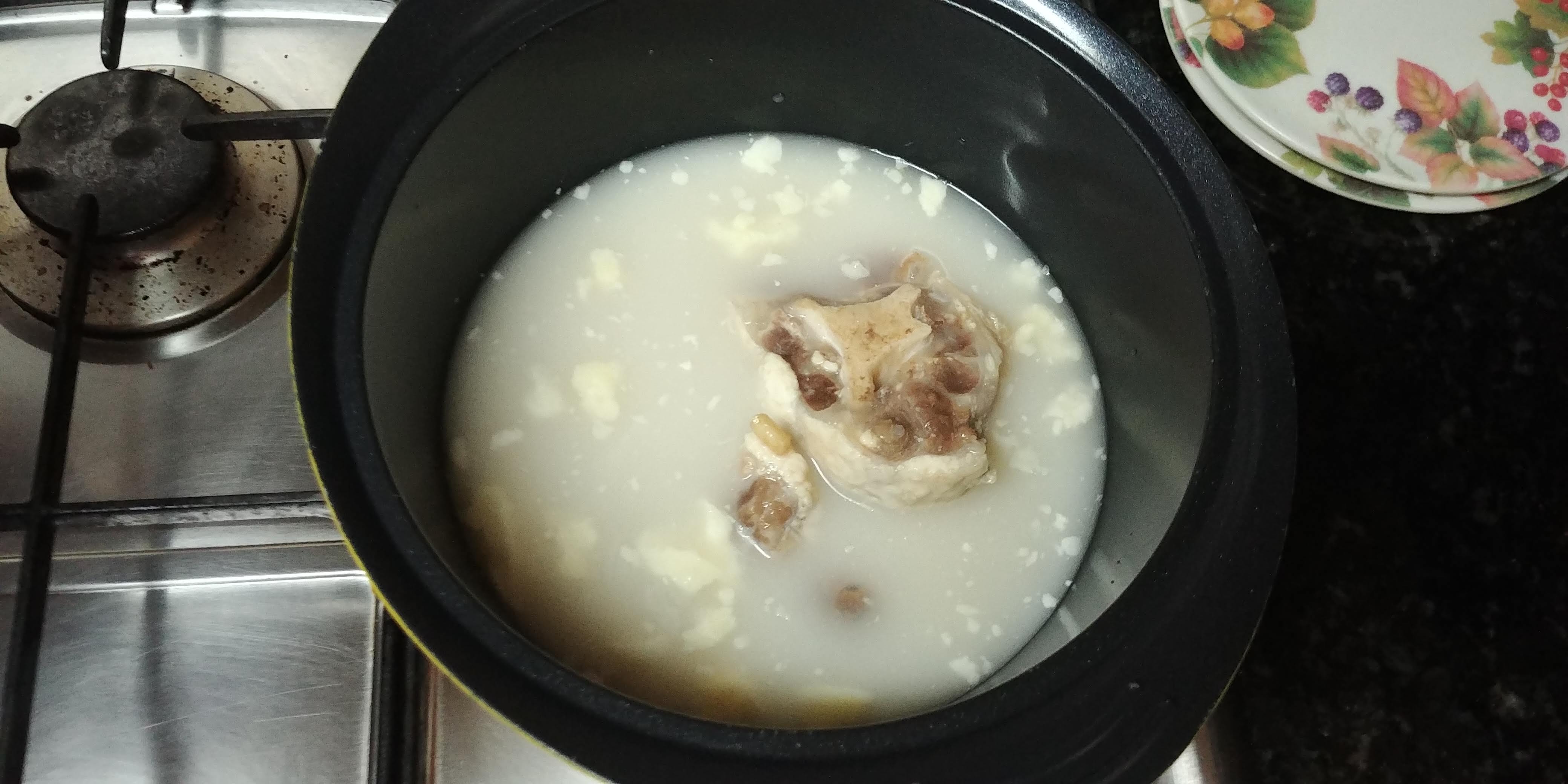 냄비에 노브랜드 꼬리곰탕을 넣은 모습입니다. 허여멀건하니 정말 맛이 없게 생겼습니다. 육수와 소 꼬리 말고는 들어있는 재료가 없습니다. 빨리 끓여보도록 하겠습니다.