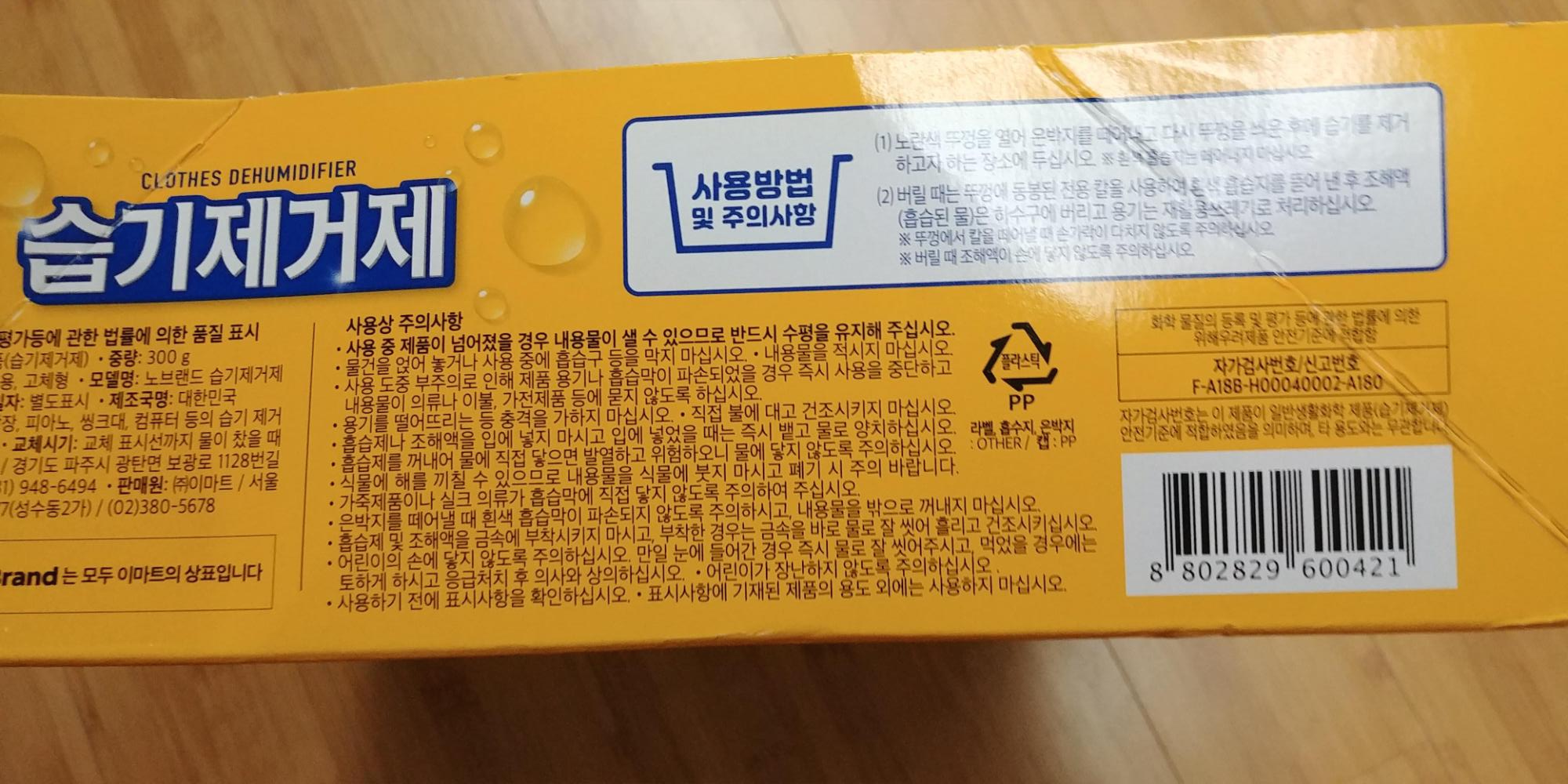 때마침 엄마가 노브랜드에서 기가막힌 물건을 하나 사 왔습니다. 그것은 바로 노브랜드 습기제거제입니다. 물론 저 녀석이 에어컨의 기능을 하는 것은 아닙니다. 그냥 엄마가 사 왔길래 이 말 저말 갖다 붙여봤습니다.