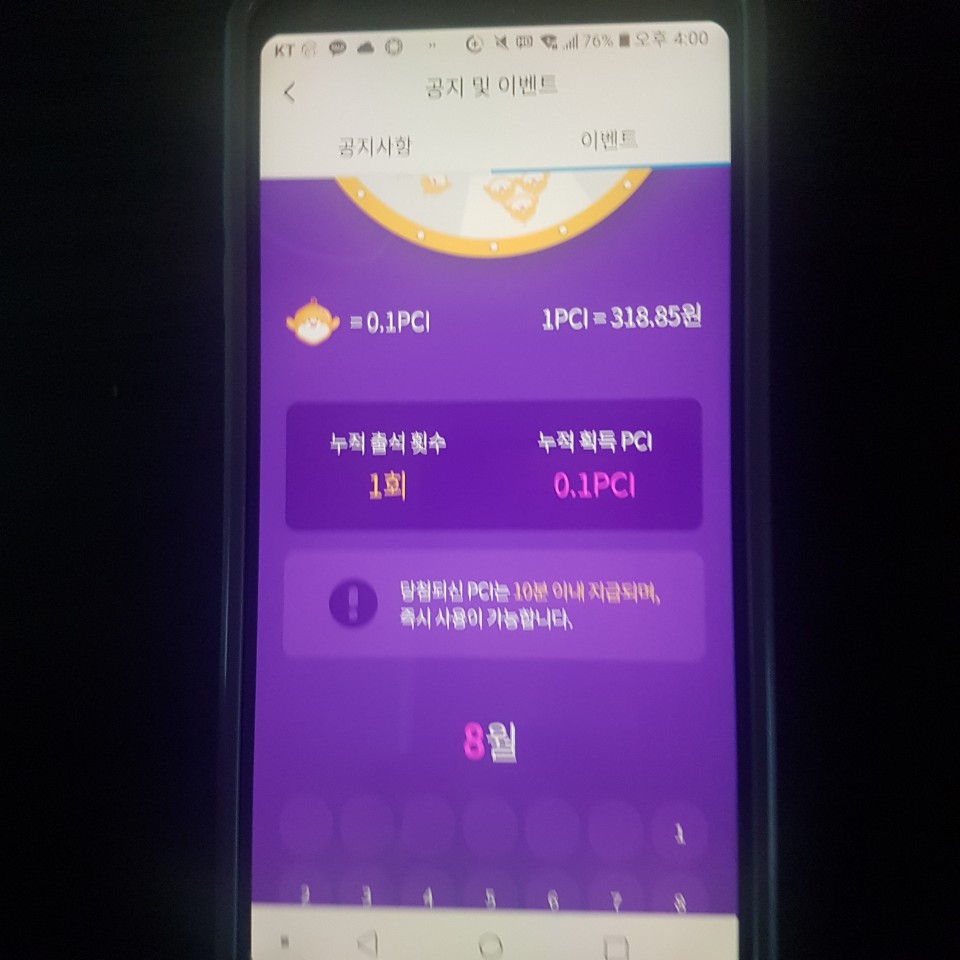 네, 0.1 페이 코인이 당첨됐습니다. 31원입니다. 개창렬입니다.