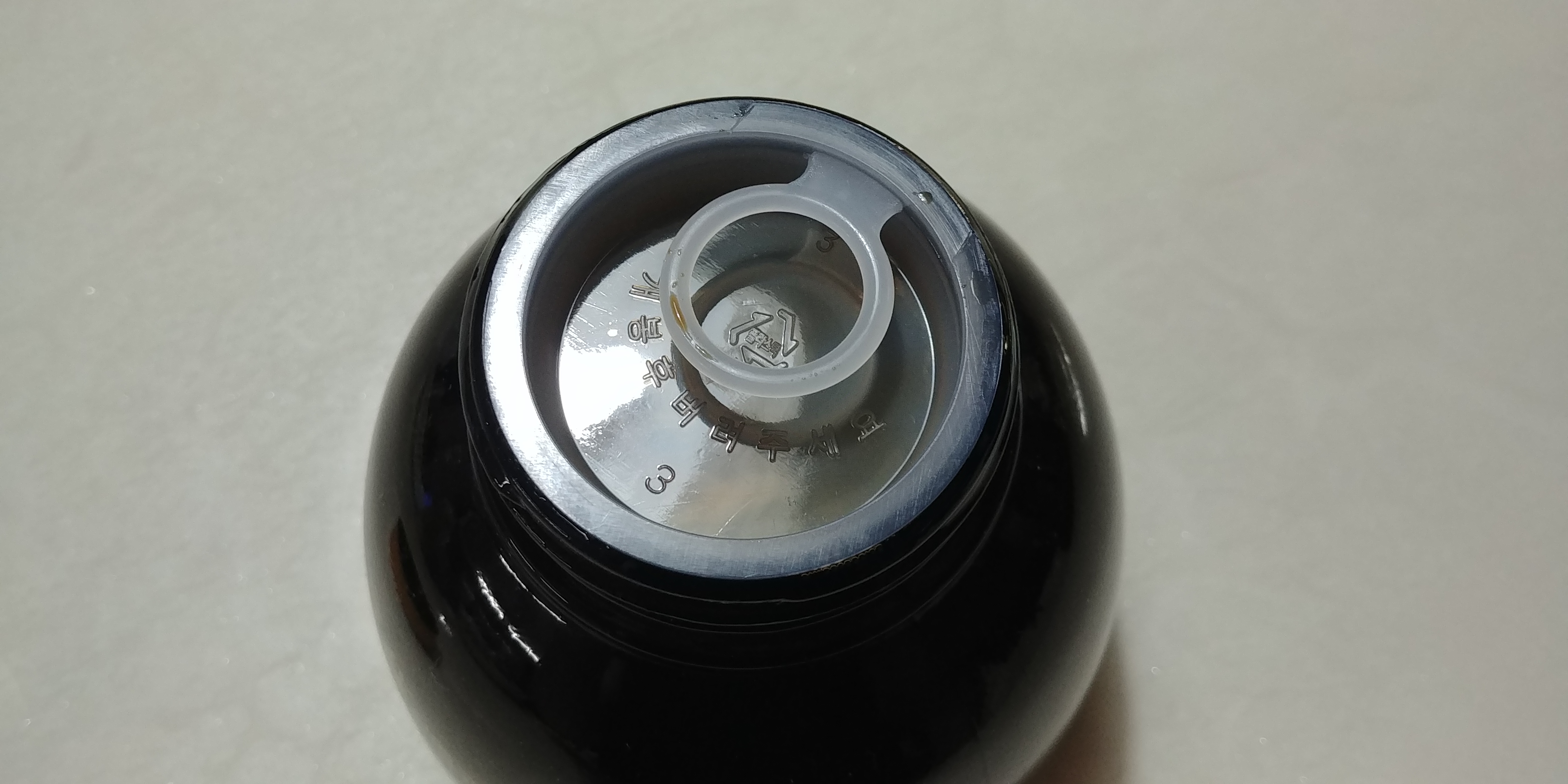이제 뚜껑을 열어보도록 하겠습니다. 뚜껑을 열어보니 흰색 플라스틱 마개가 하나 더 있습니다. 아마 내용물이 새지 않게 이중으로 처리를 해놓은 것 같습니다.