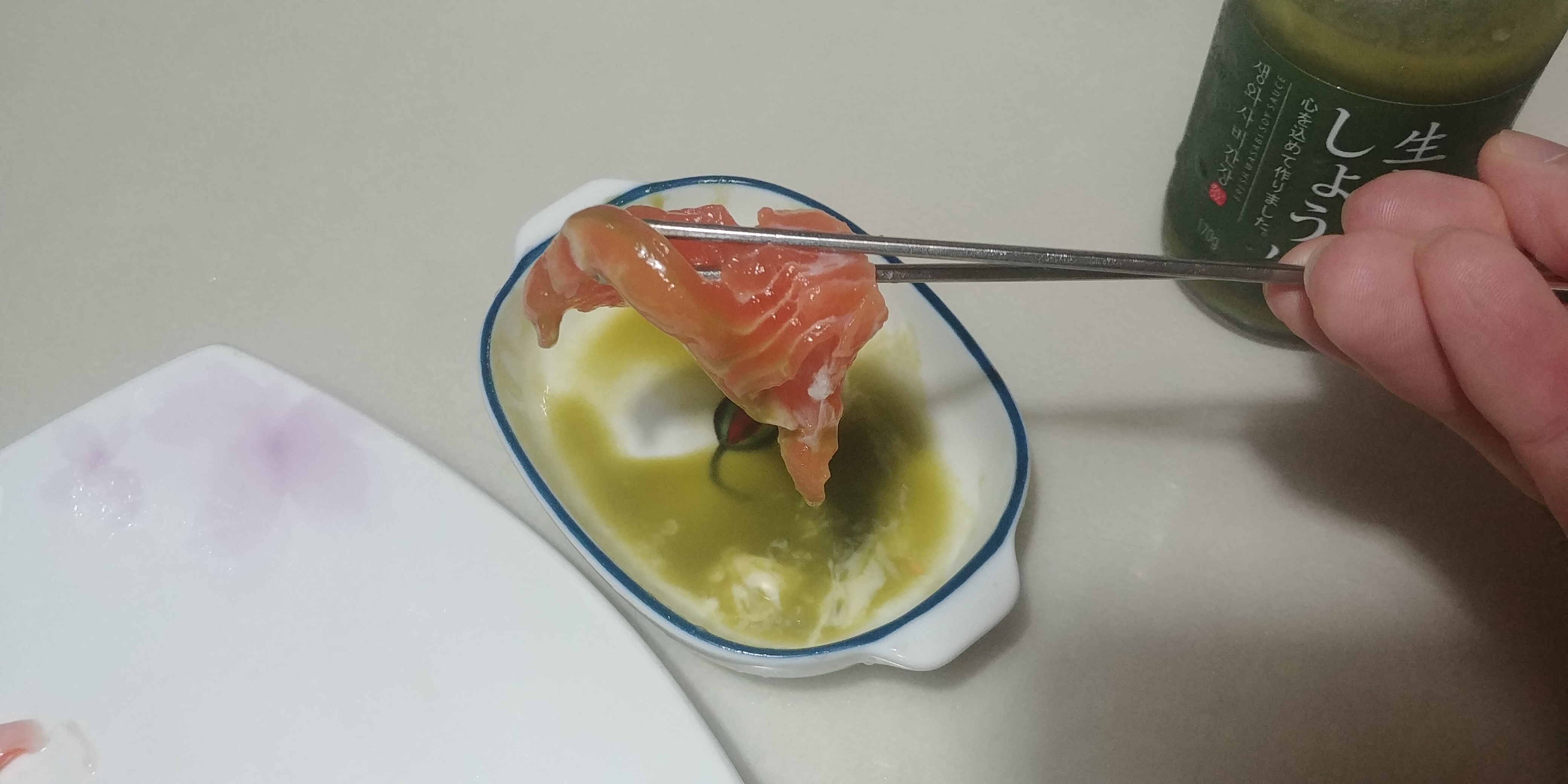 물론 집에 생와사비 간장 소스가 있으신 분들은 별로 없겠지만, 이것도 냉장고에 있길래 이 소스와 같이 먹어봤습니다. 사실 와사비가 없으신 분들은 그냥 간장에만 찍어 드셔도 맛있습니다.