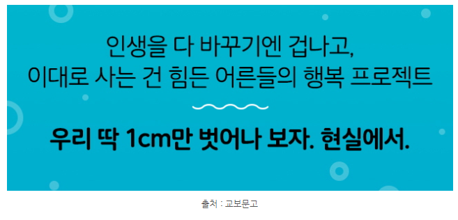 이 책의 핵심적인 주제를 요약해 보자면, 1cm 다이빙을 통해서 행복을 찾아가 보자는 내용이다.