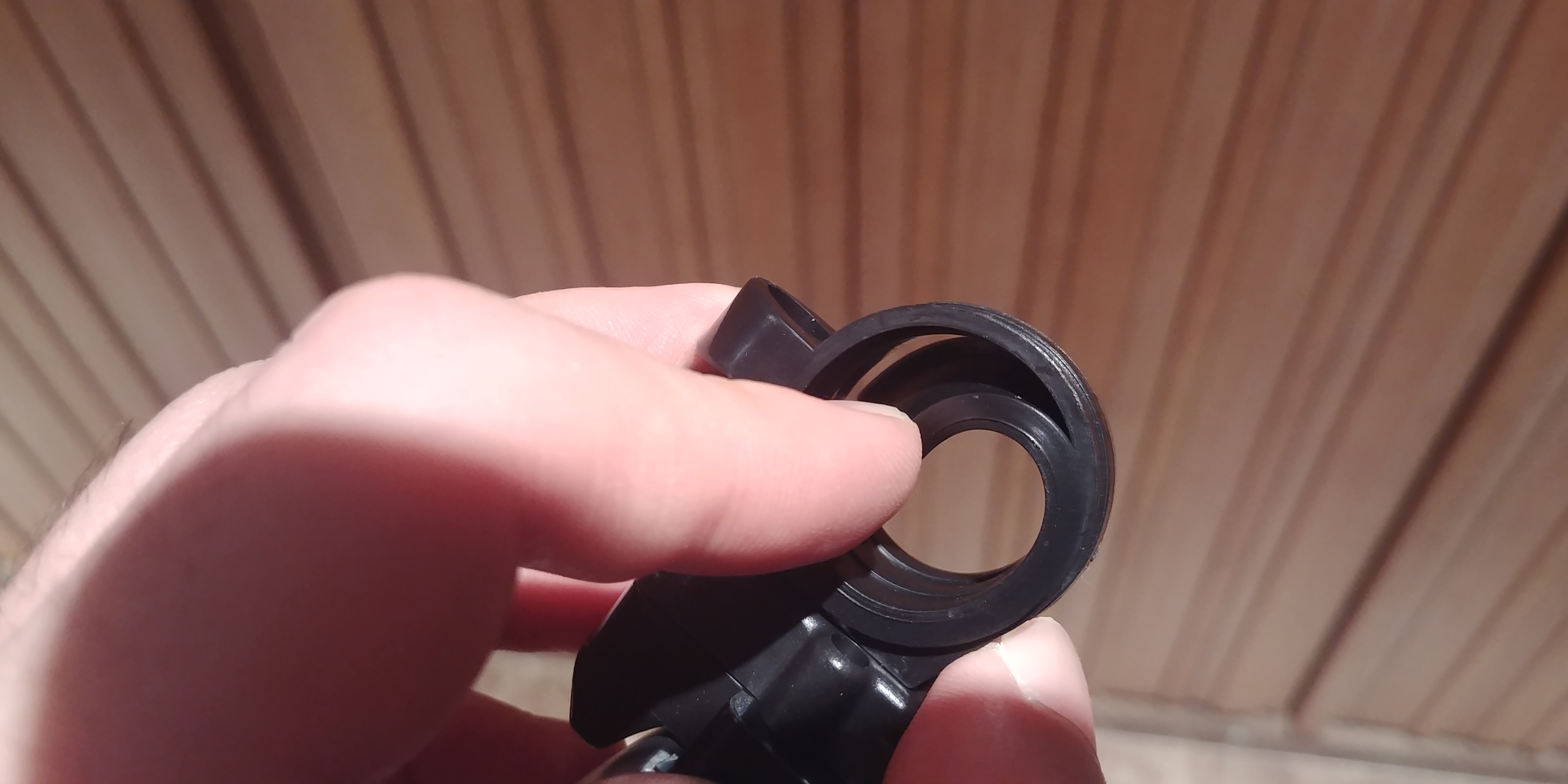 방법은 간단합니다. 저 고리같은 부분을 자전거 손잡이 옆에 끼워주면 끝입니다. 하지만 문제가 하나 있습니다. 제가 손가락을 집어넣은 곳에는 원래 결합 강도를 조절할 수 있는 나사가 끼워져 있습니다.