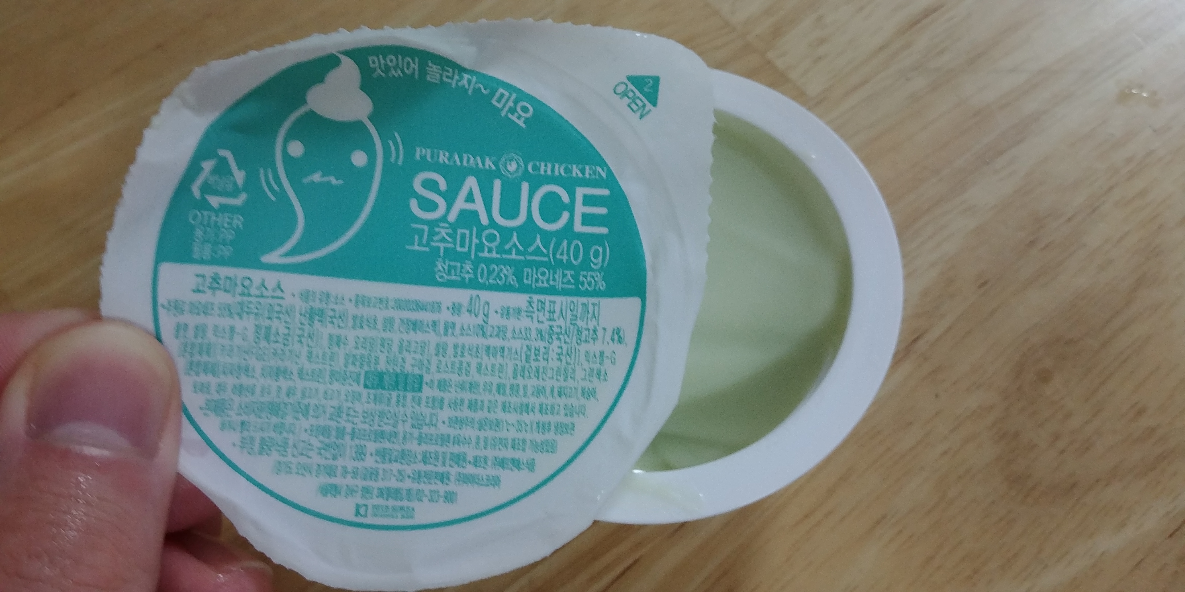 제가 고추마요 치킨을 시켜서 고추마요 소스가 온줄 알았지만 다른 블로그들을 살펴본 결과, 푸라닭의 다른 치킨을 시켜도 기본으로 따라오는 소스인 것 같습니다.