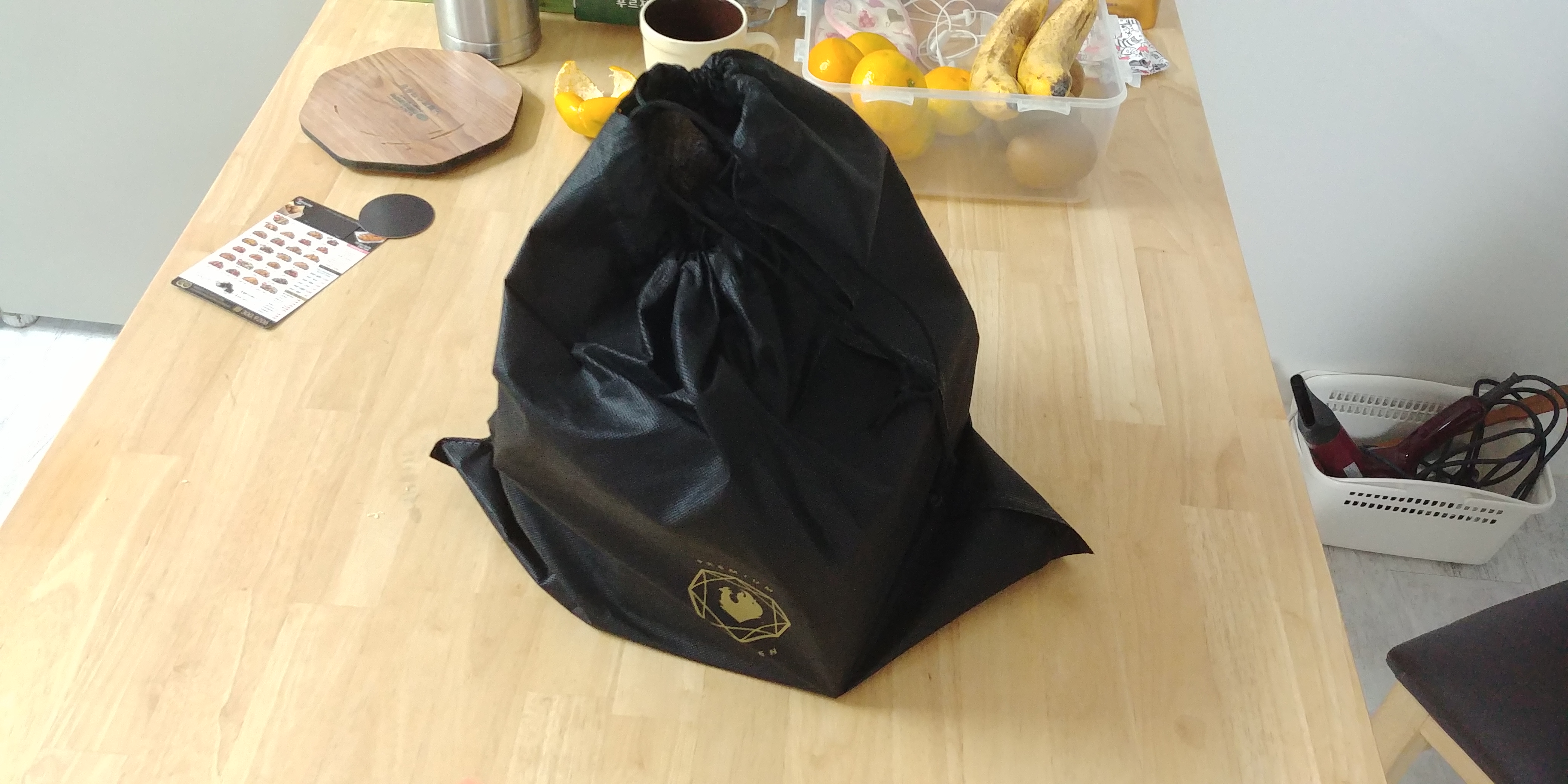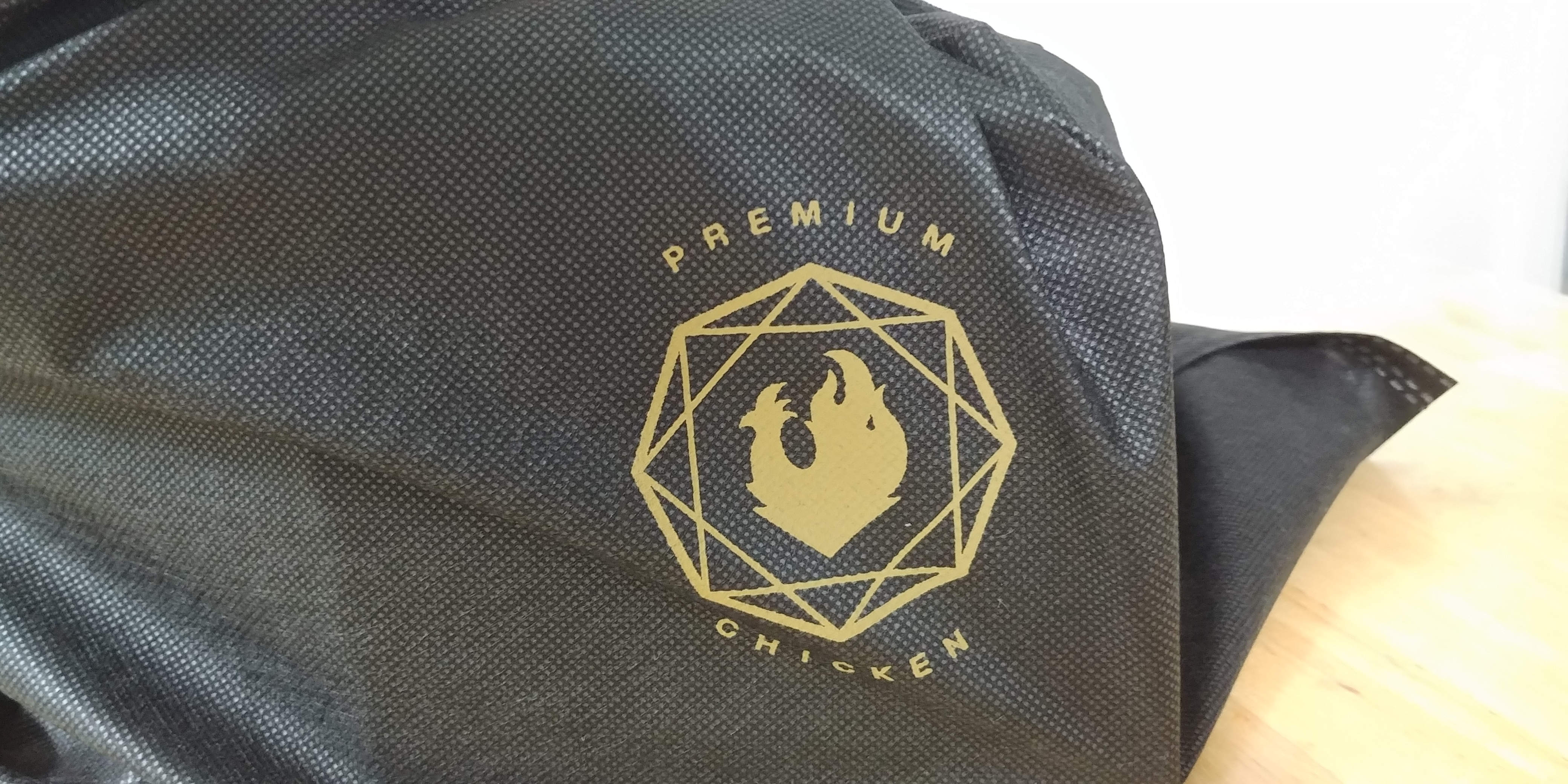 보통 다른 브랜드의 치킨들은 비닐봉지나 종이 쇼핑백에 포장되어서 배달되는데, 푸라닭(프라닭?)은 신기하게도 신발주머니 같은 포장지에 포장되어 옵니다.