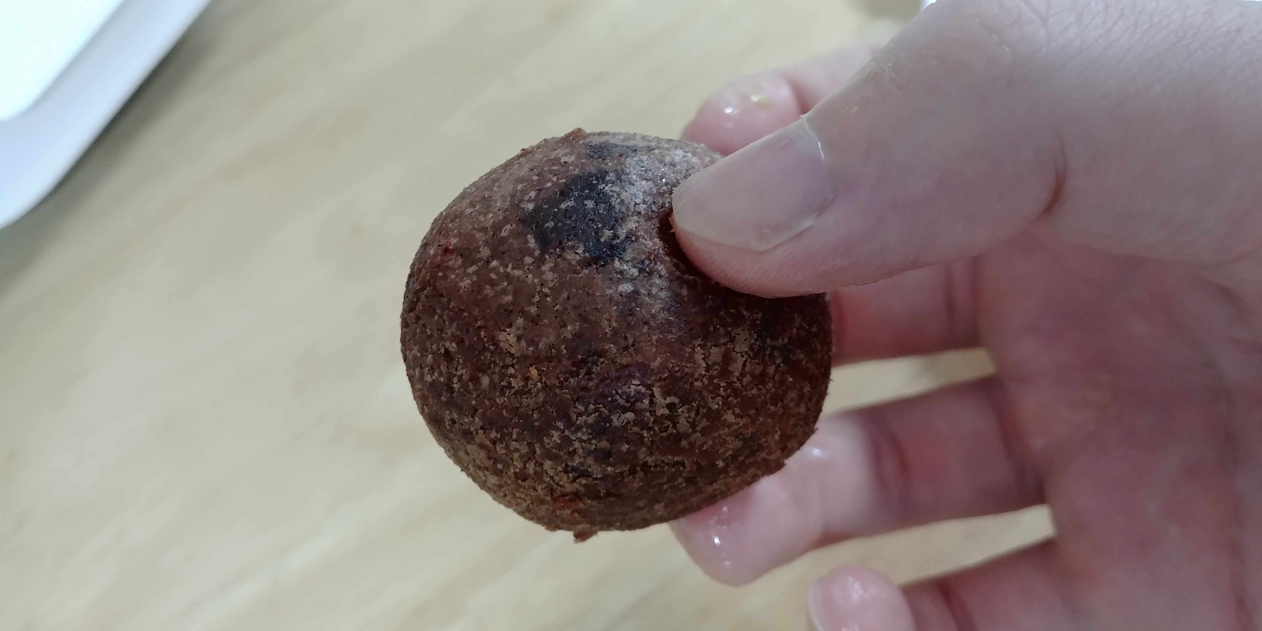 다음으로는 블랙 치즈볼입니다. 무슨 재료를 넣었길래 검은색 치즈볼이 되었는지는 잘 모르겠습니다.