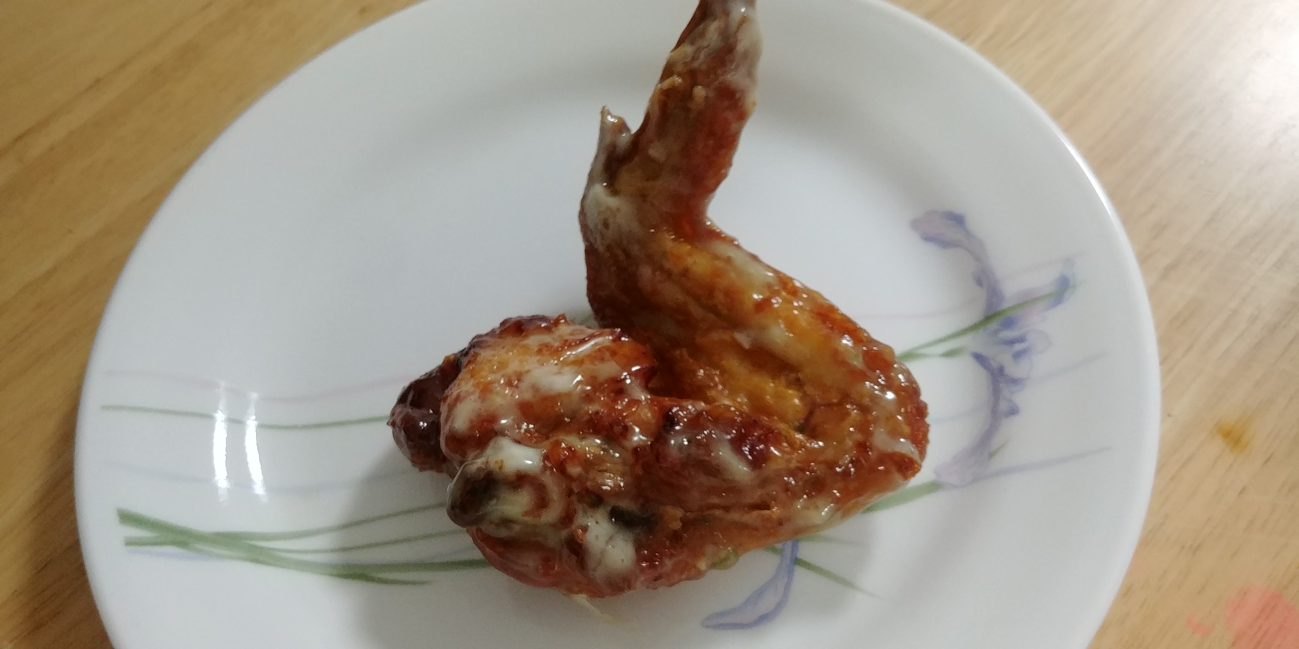 고추마요 치킨의 날개 부분이 영롱해 보입니다.