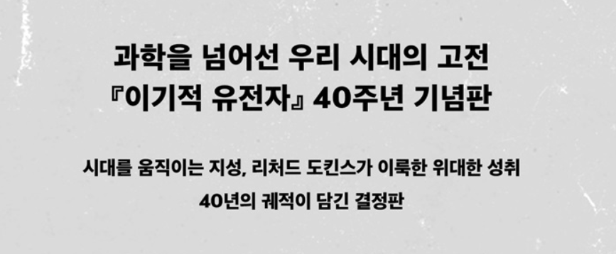 오늘 리뷰를 하고 독후감(줄거리)을 쓸 책은 저출산 관련 책이자 책읽어드립니다에 나온 '이기적 유전자'. 내가 생각하는 이 책의 부제는 '이기적인 것이 곧 이타적인 것'.