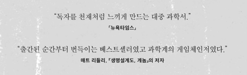 그러나 총균쇠, 사피엔스와 마찬가지로 인간, 그리고 나의 존재에 대해 다시 한 번 생각해보게 하는 그러한 책.