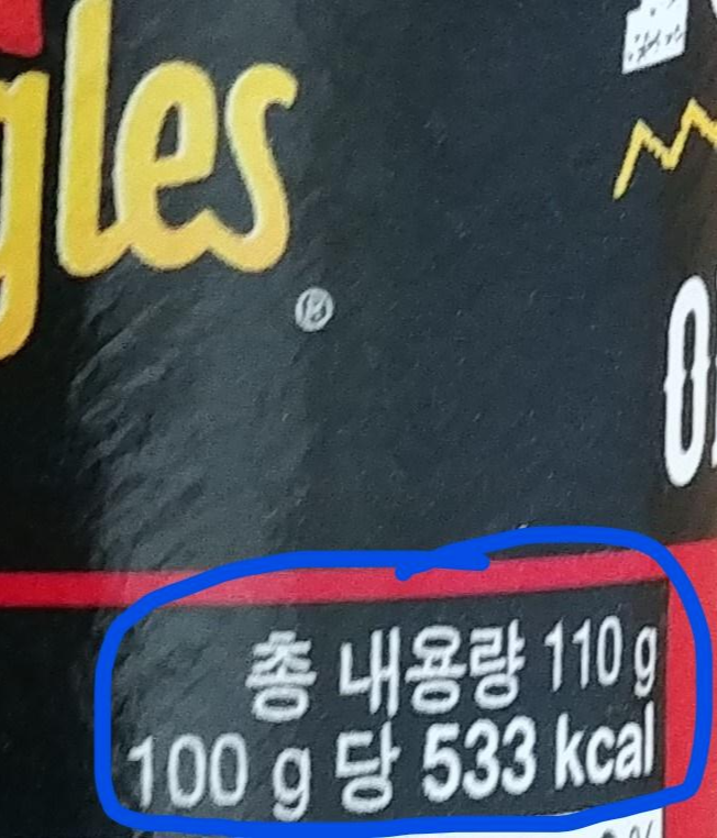 하지만 칼로리가 노브랜드 또띠아칩이 32kcal 더 높습니다. 별 차이 없습니다.